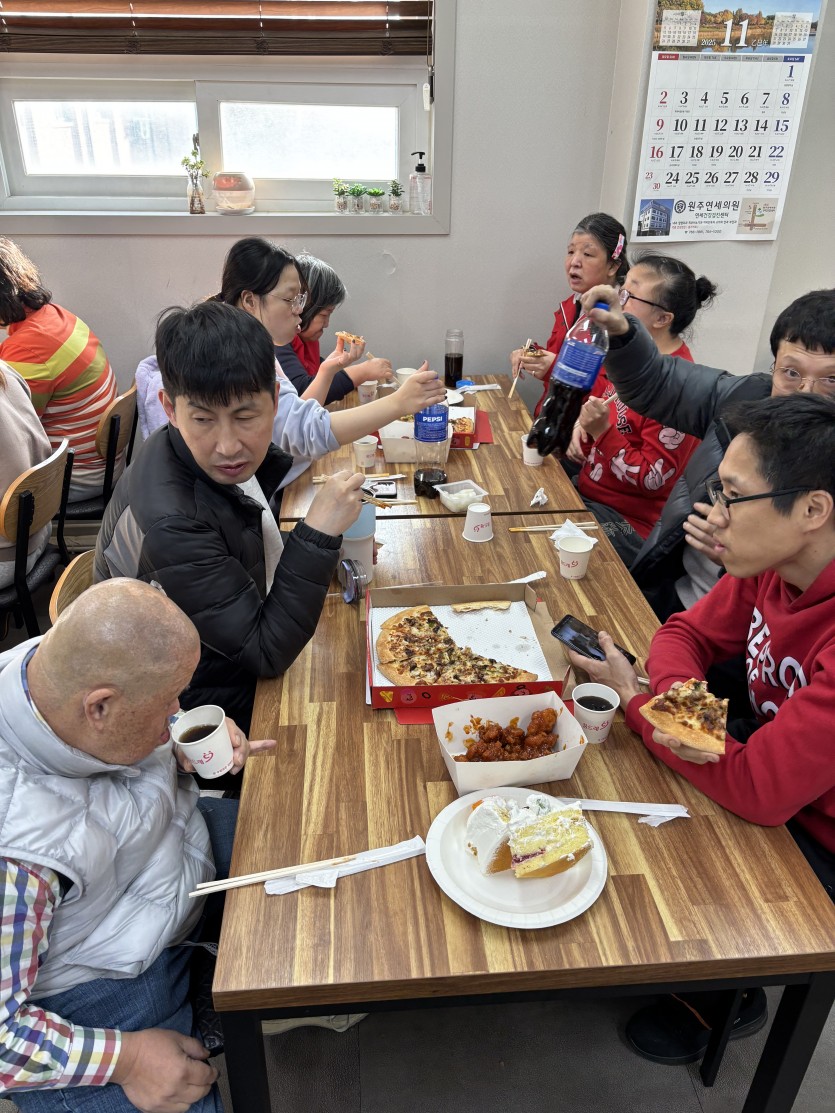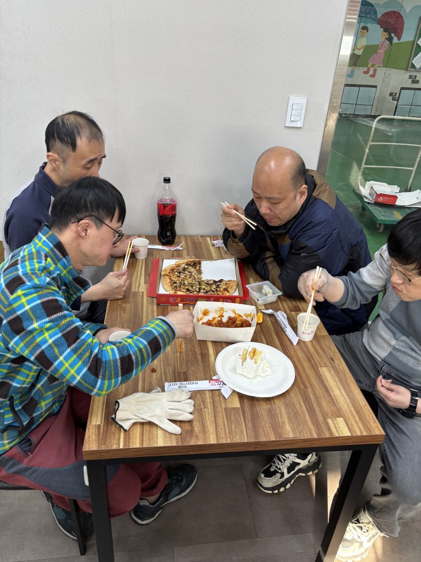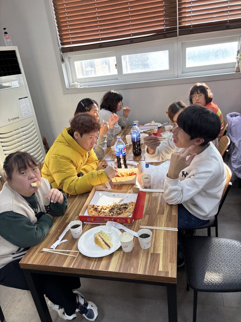 다 함께 맛있는 치킨과 피자를 먹으며 즐거운 시간을 보냈답니다^^